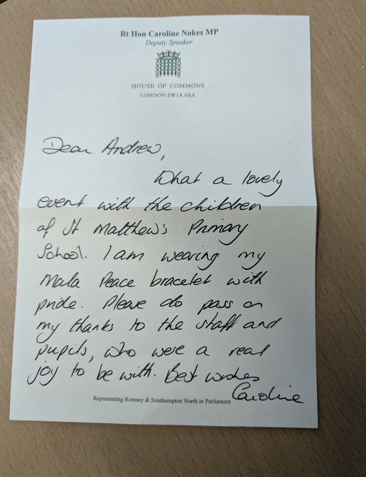 This remarkable opportunity would not have been possible without the unwavering support of our MP, Andrew Weston, who has been such a constant champion of our work and our values. Andrew recognised the power of what our children are doing and helped us share our peace message far beyond the walls of St Matthew's. He brought together MPs from across the country to join us for this fabulous event, including Caroline Nokes, Deputy Speaker of the House of Commons, and their genuine interest in what our children had to say was truly moving and for staff quite emotional at times.